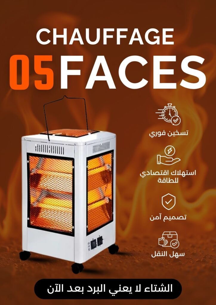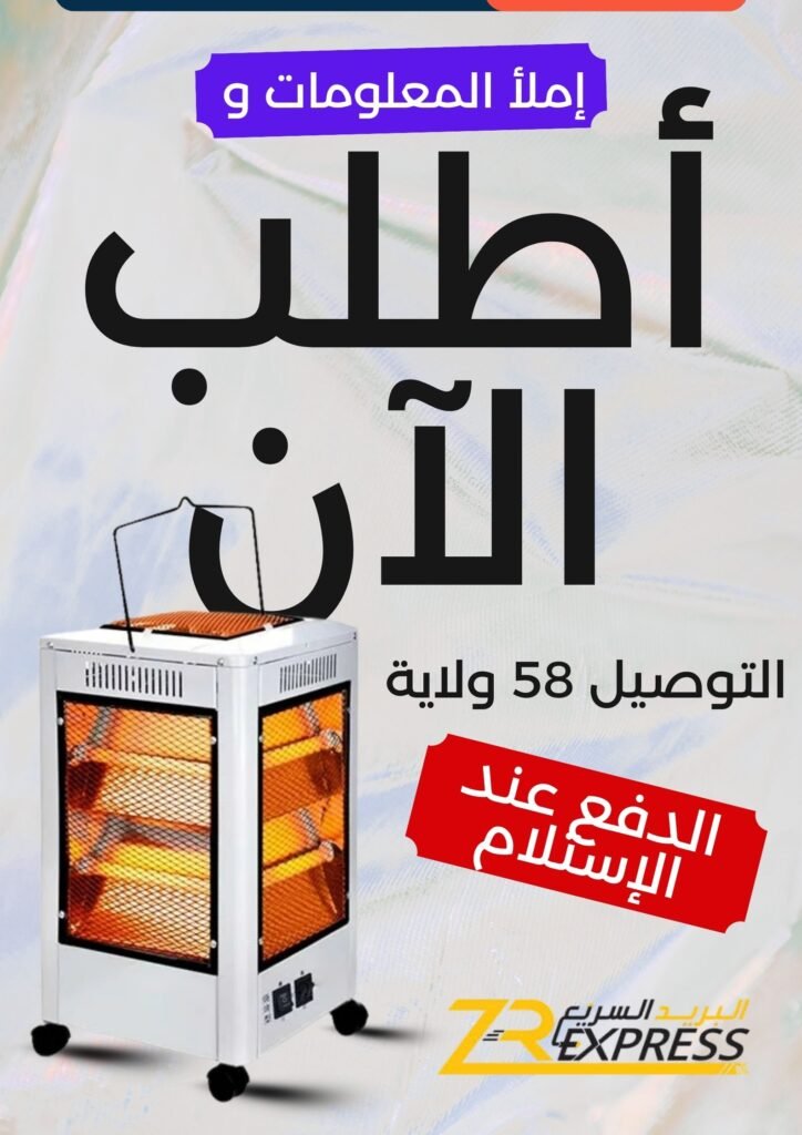 للطلب أضف معلوماتك في الأسفل 👇 اختر الولاية...01 Adrar - أدرار02 Chlef - الشلف03 Laghouat - الأغواط04 Oum El Bouaghi - أم البواقي05 Batna - باتنة06 Béjaïa - بجاية07 Biskra - بسكرة08 Bechar - بشار09 Blida - البليدة10 Bouira - البويرة11 Tamanrasset - تمنراست 12 Tébessa - تبسة 13 Tlemcene - تلمسان14 Tiaret - تيارت15 Tizi Ouzou - تيزي وزو16 Alger - الجزائر17 Djelfa - الجلفة18 Jijel - جيجل19 Sétif - سطيف20 Saïda - سعيدة21 Skikda - سكيكدة22 Sidi Bel Abbès - سيدي بلعباس23 Annaba - عنابة24 Guelma - قالمة25 Constantine - قسنطينة26 Médéa - المدية27 Mostaganem - مستغانم28 MSila - مسيلة29 Mascara - معسكر30 Ouargla - ورقلة31 Oran - وهران32 El Bayadh - البيض33 Illizi - إليزي 34 Bordj Bou Arreridj - برج بوعريريج35 Boumerdès - بومرداس36 El Tarf - الطارف37 Tindouf - تندوف38 Tissemsilt - تيسمسيلت39 Eloued - الوادي40 Khenchela - خنشلة41 Souk Ahras - سوق أهراس42 Tipaza - تيبازة43 Mila - ميلة44 Aïn Defla - عين الدفلى45 Naâma - النعامة46 Aïn Témouchent - عين تموشنت47 Ghardaïa - غرداية48 Relizane- غليزان49 Timimoun - تيميمون50 Bordj Baji Mokhtar - برج باجي مختار51 Ouled Djellal - أولاد جلال52 Béni Abbès - بني عباس53 Aïn Salah - عين صالح54 In Guezzam - عين قزام55 Touggourt - تقرت56 Djanet - جانت57 El MGhair - المغير58 El Menia - المنيعة اختر البلدية... - + اطلب الآن ملخص الطلب Chauffage 05 Faces x1 د.ج3,900.00 سعر الشحن - السعر الإجمالي د.ج3,900.00